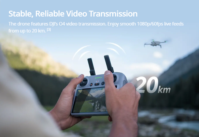 Transmission Range: Up to 20 km (O4)